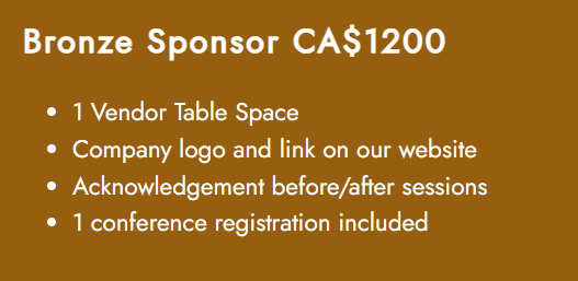 Bronze Sponsorship Package * All prices are in Canadian Dollars ($CA)