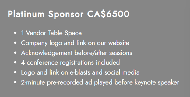 Platinum Sponsorship Package * All prices are in Canadian Dollars ($CA)